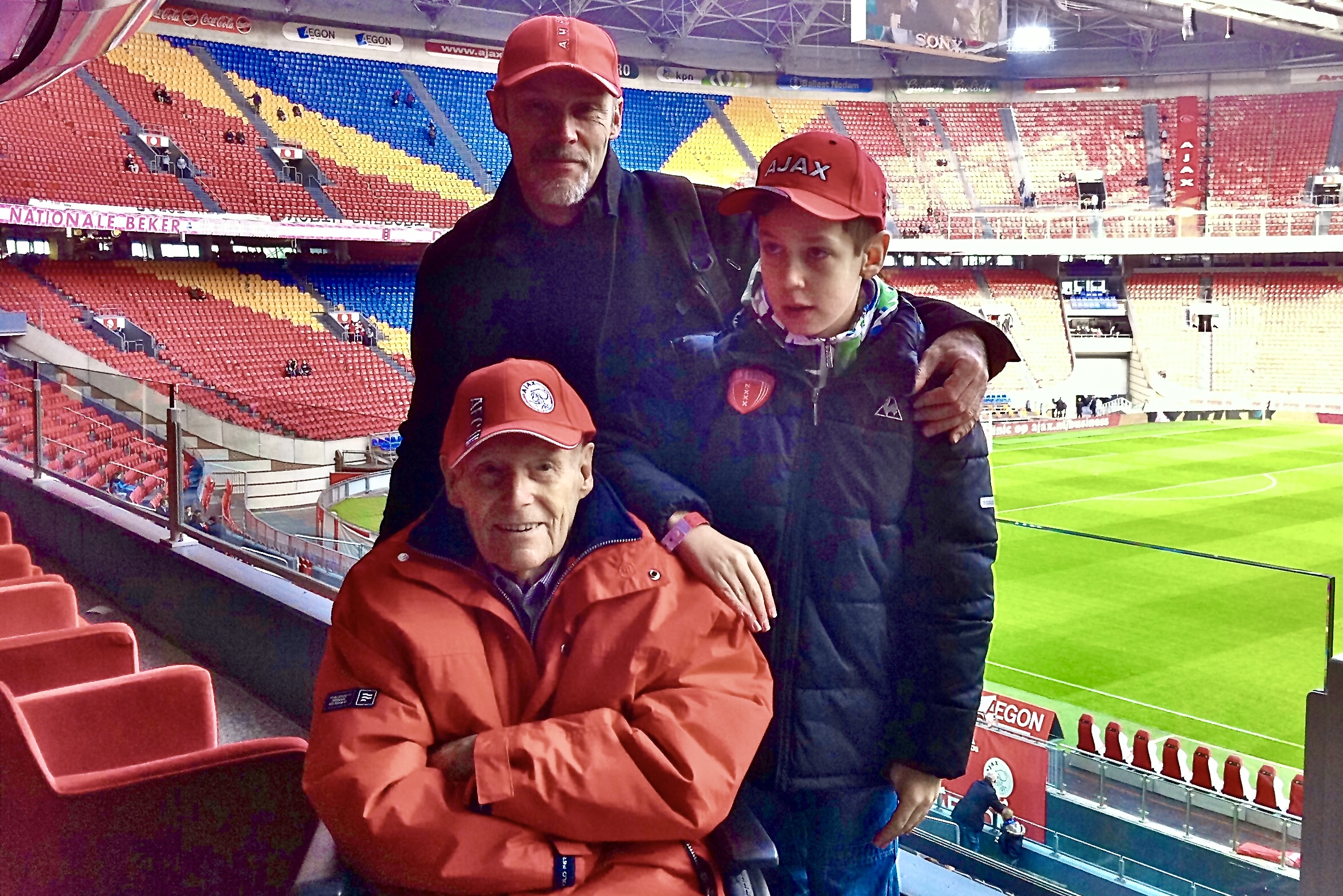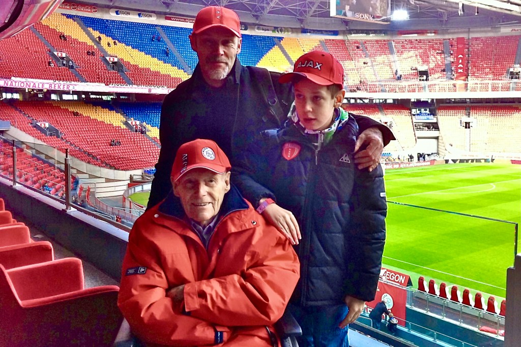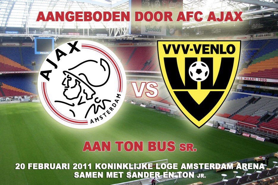 Zondag 20 februari 2011 ben ik samen met mijn vader en mijn zoon Sander naar de wedstrijd AFC Ajax – VVV Venlo geweest in de Amsterdam Arena. Klinkt misschien niet zo bijzonder, maar voor mij was het dit wel. Pa is 90 jaar, komt moeilijk uit zijn woorden en zit in een rolstoel als gevolg van een herseninfarct en twee keer een gebroken heup. Sander is elf jaar en heeft een verstandelijke handicap door een chromosoomafwijking. Geen doorsnee gezelschap dus en best een leuk verhaal over hoe we toch met z’n drieën bij deze wedstrijd terecht kwamen, op uitnodiging van Ajax en in de koninklijke loge van de Amsterdam Arena.