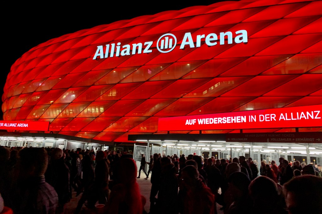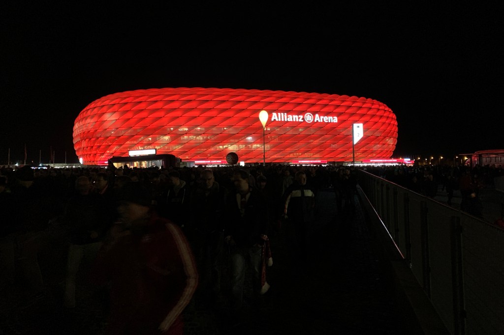 Op zondag naar de wedstrijd. Alleen al het zien van de in het donker verlichte Allianz Arena is een hele belevenis. Net als het in de stroom meegevoerd worden door tienduizenden andere supporters. De wedstrijd viel tegen. Geen van beide teams nam risico’s en de pot eindigde in een bloedeloze brilstand.